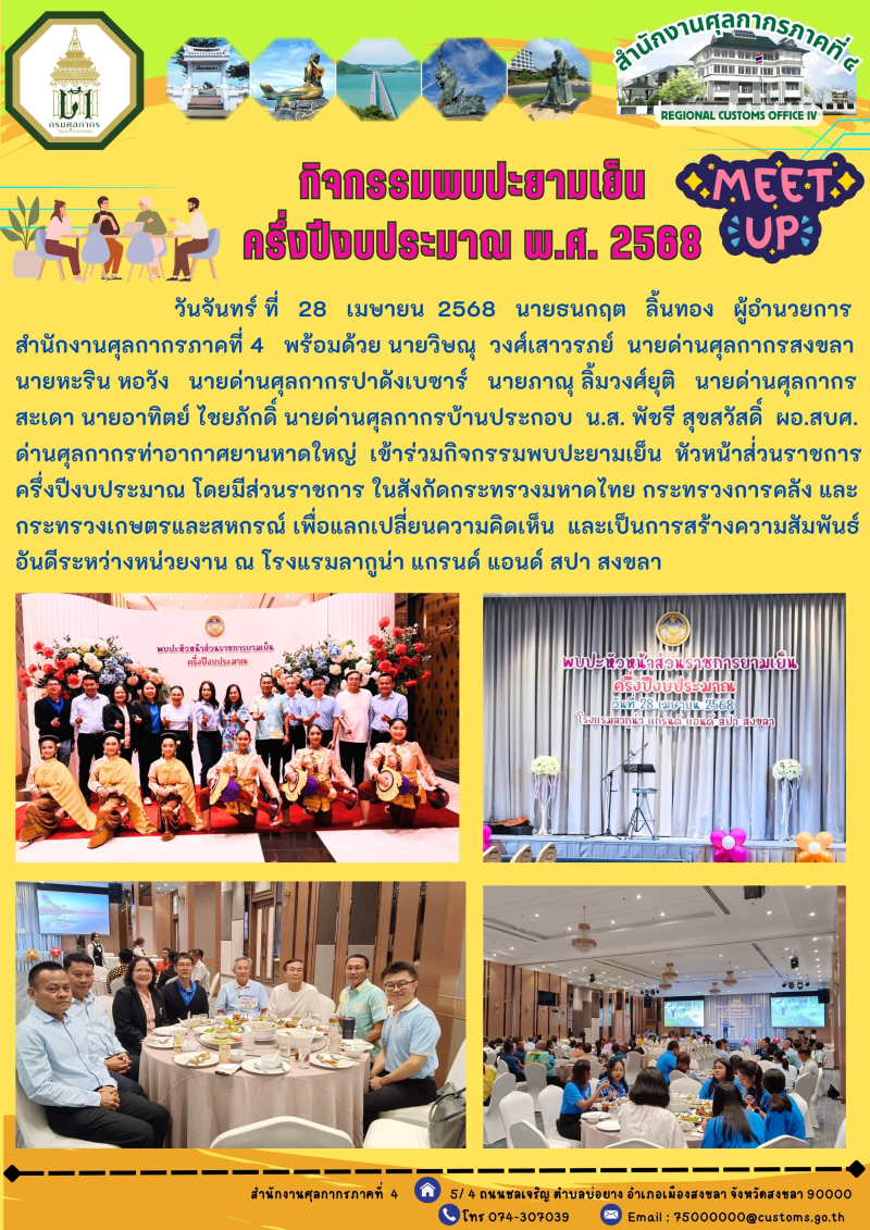 ++ศภ.4 และด่านศุลกากรในจังหวัดสงขลาเข้าร่วมกิจกรรมพบปะยามเย็น ครึ่งปีงบประมาณ พ.ศ. 2568++