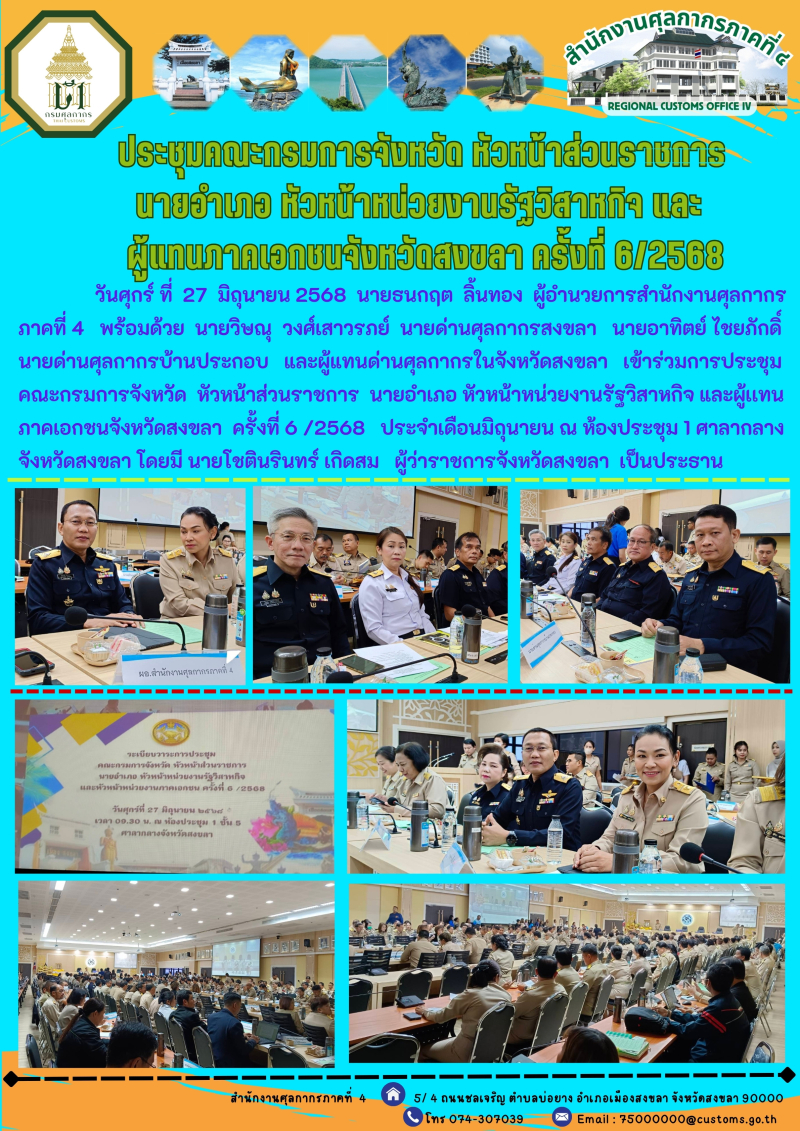 ++ ผอ.ศภ.4 พร้อมด้วยผู้แทนด่านศุลกากรในจังหวัดสงขลาเข้าร่วมประชุมกรมการจังหวัด ครั้งที่ 6/2568 ประจำเดือนมิถุนายน2568 ++