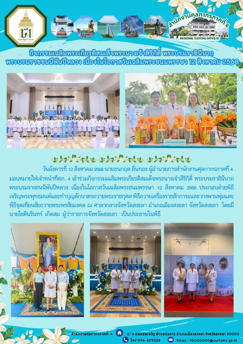 ++ศภ.๔ ร่วมกิจกรรมเฉลิมพระเกียรติสมเด็จพระนางเจ้าสิริกิติ์ พระบรมราชินีนาถ พระบรมราชชนนีพันปีหลวง เนื่องในโอกาสวันเฉลิมพระชนมพรรษา ๑๒ สิงหาคม ๒๕๖๘ ++