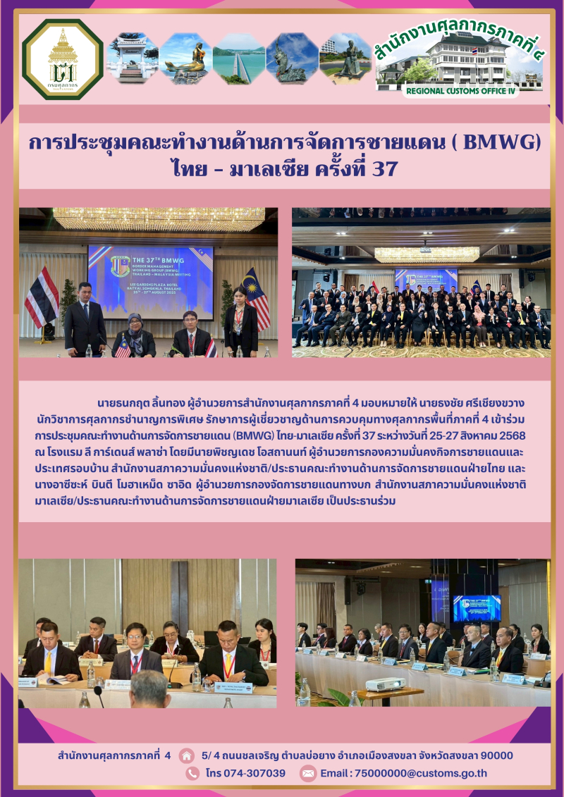 ++ศภ.4 เข้าร่วมการประชุมคณะทำงานด้านการจัดการชายแดน (ฺBMWG) ไทย-มาเลเซีย ครั้งที่ 37 ++