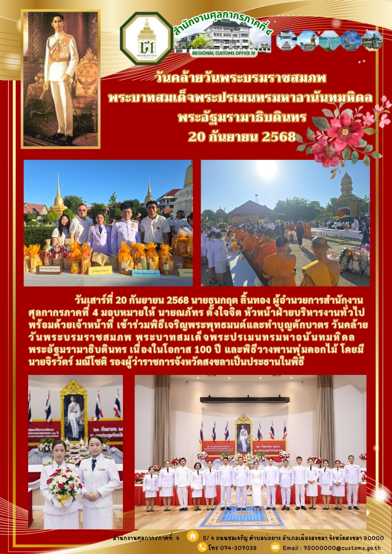 ++ ศภ.๔ เข้าร่วมวันคล้ายวันพระบรมราชสมภพพระบาทสมเด็จพระปรเมนทรมหาอานันทมหิดล พระอัฐมรามาธิบดินทร ครบ ๑๐๐ ปี พุทธศักราช ๒๕๖๘ ++