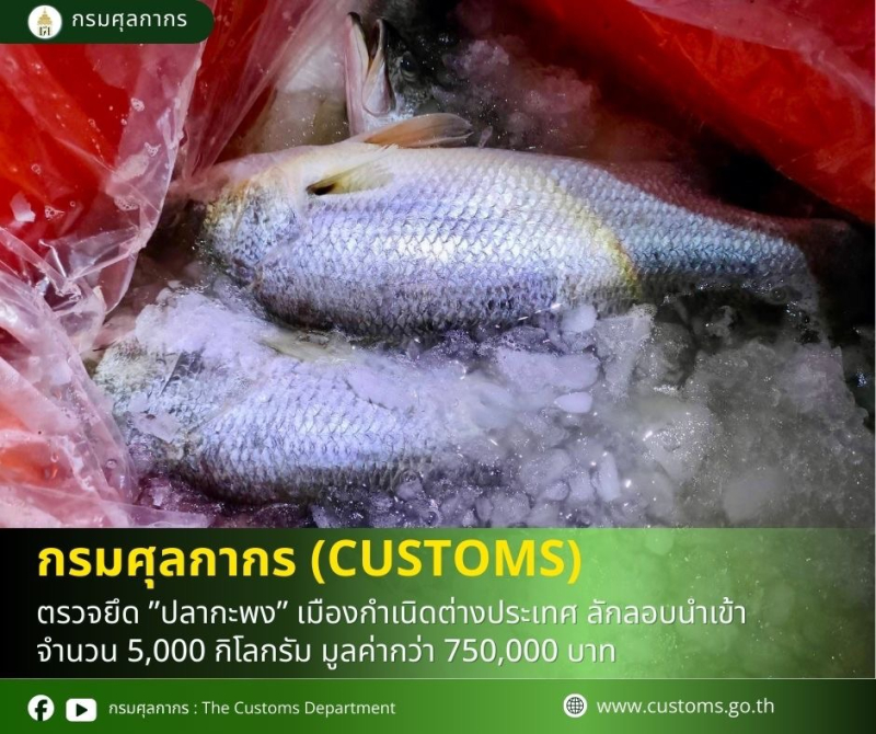 *** สำนักงานศุลกากรภาคที่ 4 ร่วมกับด่านศุลกากรตากใบ และหน่วยสืบสวนปราบปรามนราธิวาส กสป. ตรวจยึด 'ปลากะพง' เมืองกำเนิดต่างประเทศ จำนวน 100 ลัง น้ำหนัก 5,000 กิโลกรัม รวมมูลค่ากว่า 750,000 บาท ***