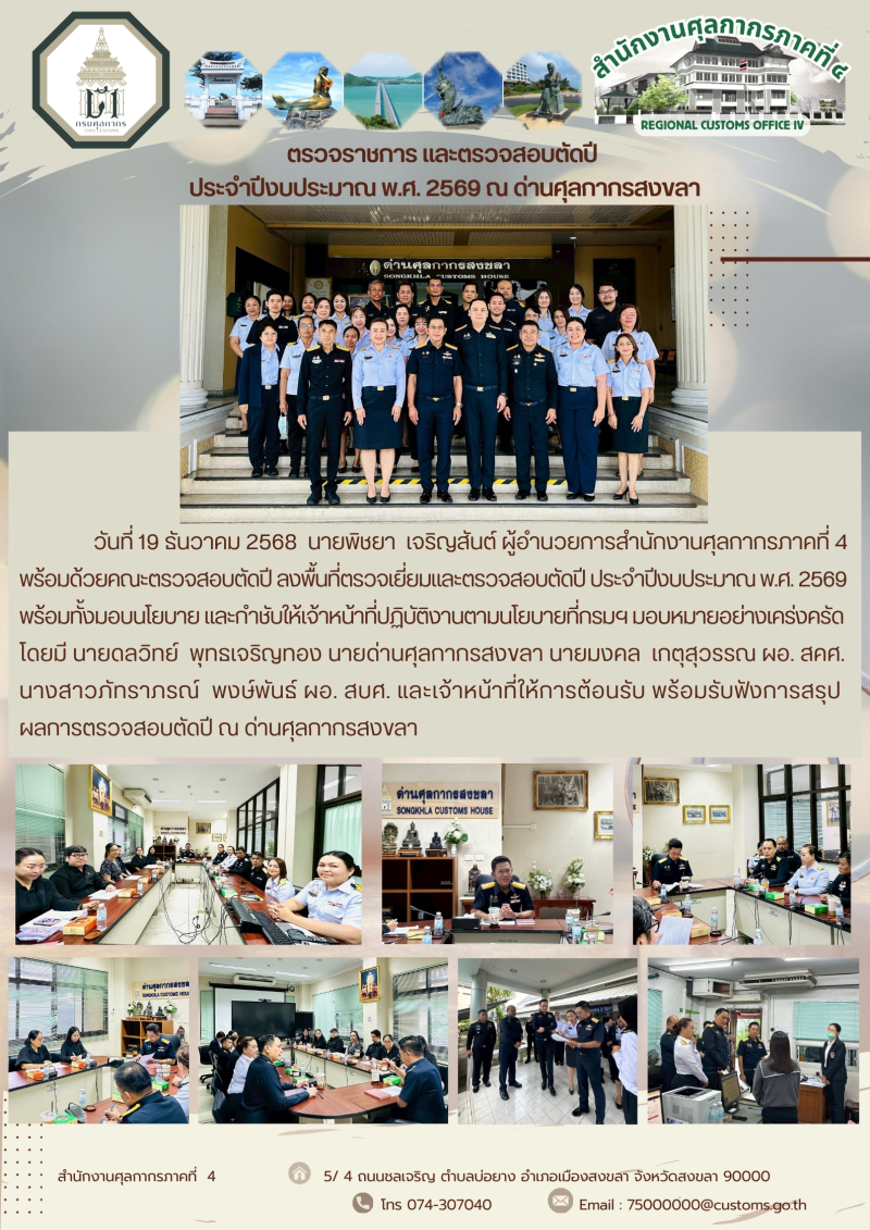 ++ผอ.ศภ.4 พร้อมคณะตรวจสอบตัดปี ลงพื้นที่ตรวจเยี่ยมและตรวจสอบตัดปีด่านศุลกากรสงขลา ประจำปีงบประมาณ พ.ศ.2569++