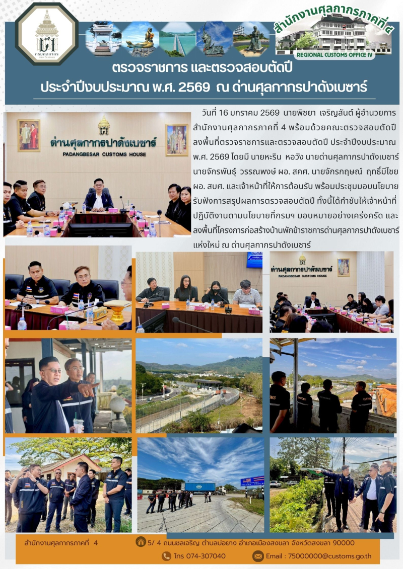 ++ผอ.ศภ.4 พร้อมคณะตรวจสอบตัดปี ลงพื้นที่ตรวจเยี่ยมและตรวจสอบตัดปีด่านศุลกากรปาดังเบซาร์ ประจำปีงบประมาณ พ.ศ.2569++