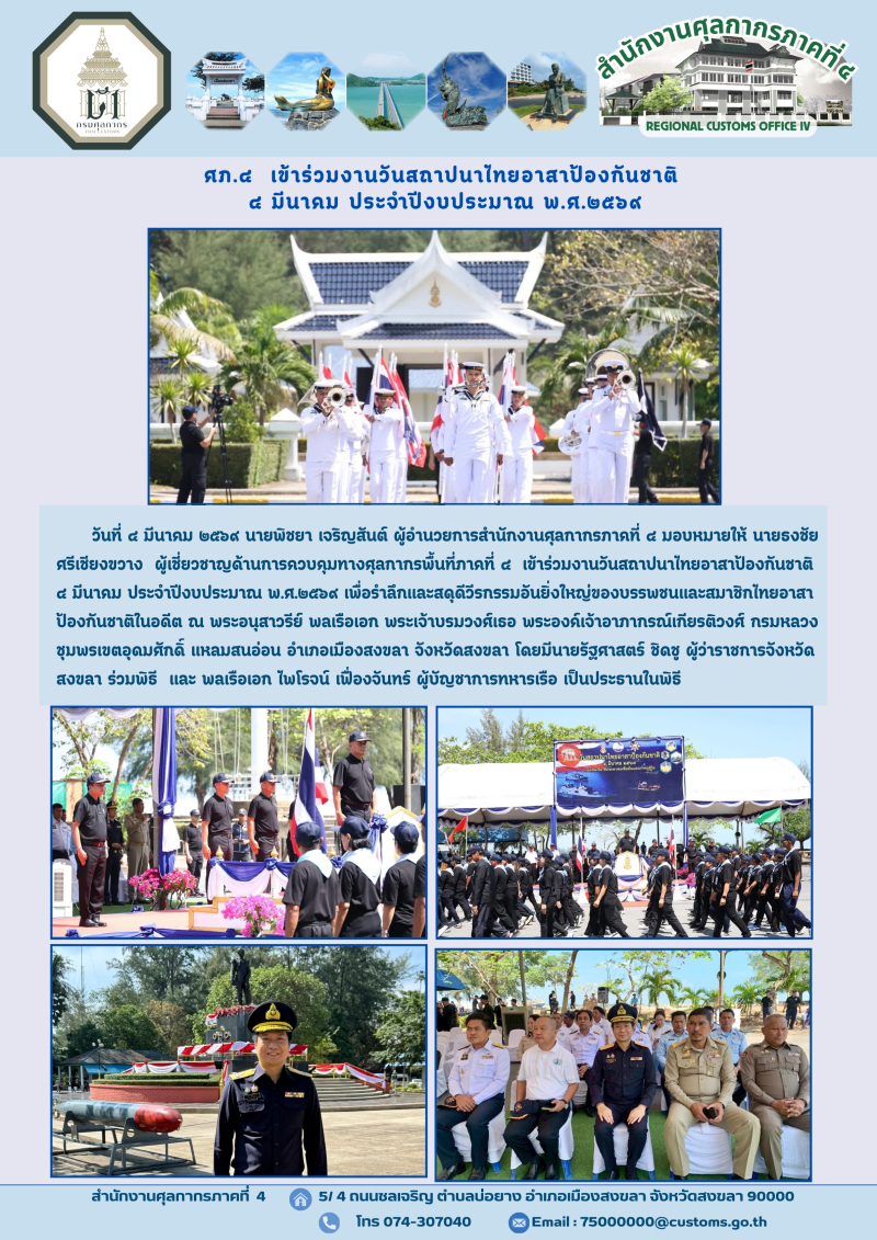 ศภ.๔ เข้าร่วมงานวันสถาปนาไทยอาสาป้องกันชาติ ๔ มีนาคม ประจำปีงบประมาณ พ.ศ.๒๕๖๙